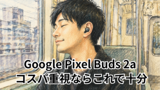 Google Pixel Buds 2aを実体験ベースでのレビュー。発売日やノイズキャンセリング性能、コーデック、Gemini連携の使い勝手まで詳しく紹介し、購入前の不安を解消します。